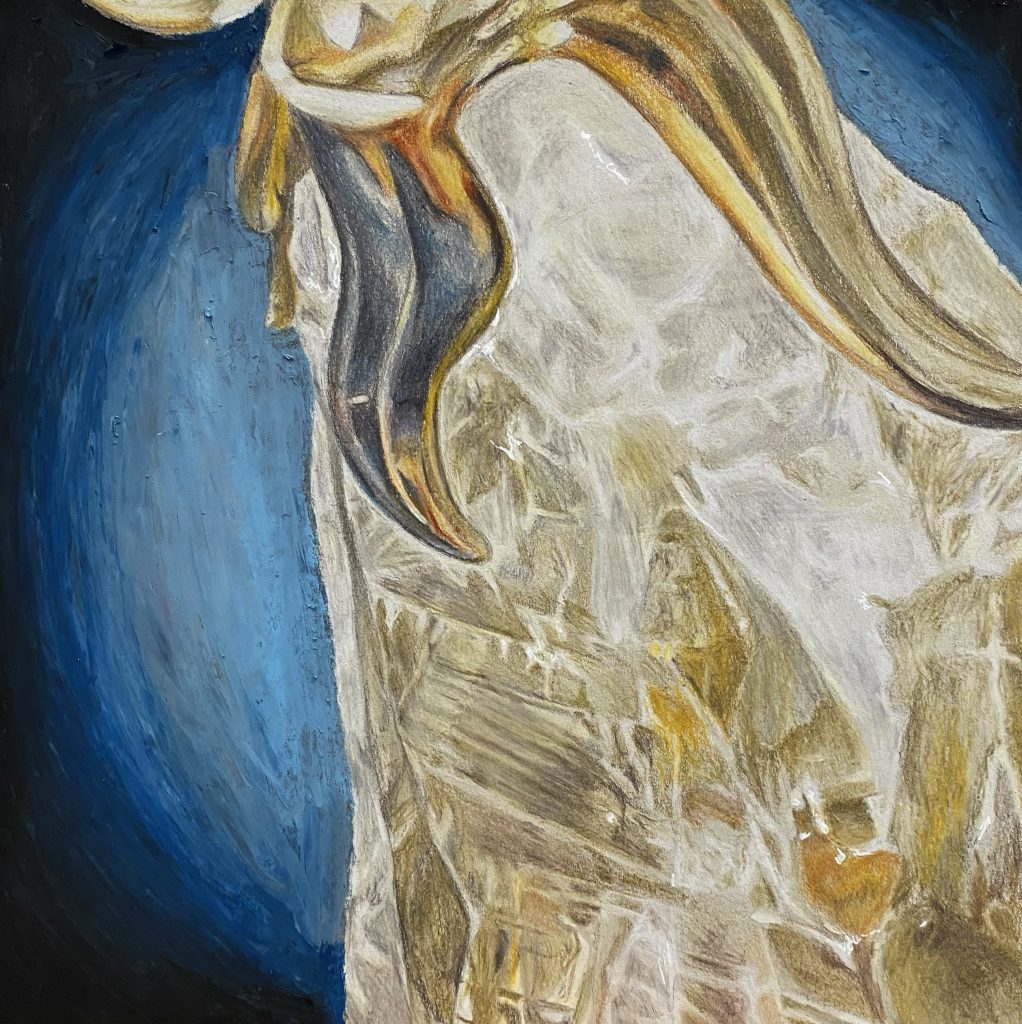Colored pencil and oil pastel on paper, 12 x 12 inches, 2022